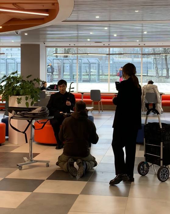 We met in the co-working space of our university, it is a very cozy place. Also, by an interesting coincidence, at that time there was a musician from China who played a Chinese musical instrument. I’d like to show you a video so you can hear how beautifully this man played his instrument, but I can’t post the video here.