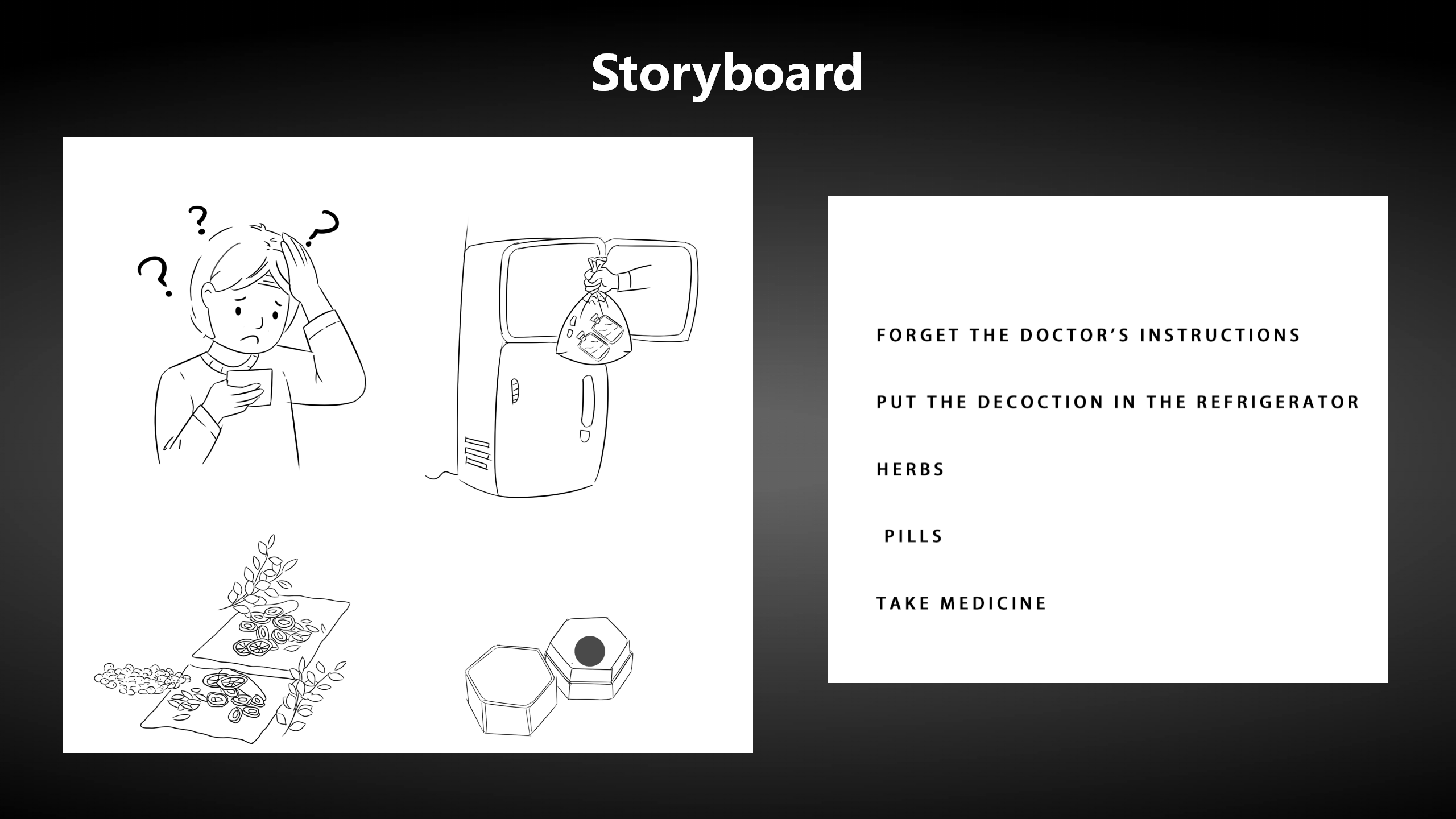 1. The type of the medicine: we decided that we only need Chinese traditional medicine for this time’s brief. For western medicine, while patients buy them, they already have all the message we need on the external packing, and they usually don’t need special ways to storage them. So, the problems from our grandparents are mostly from the storage of Chinese traditional medicine which is harder.