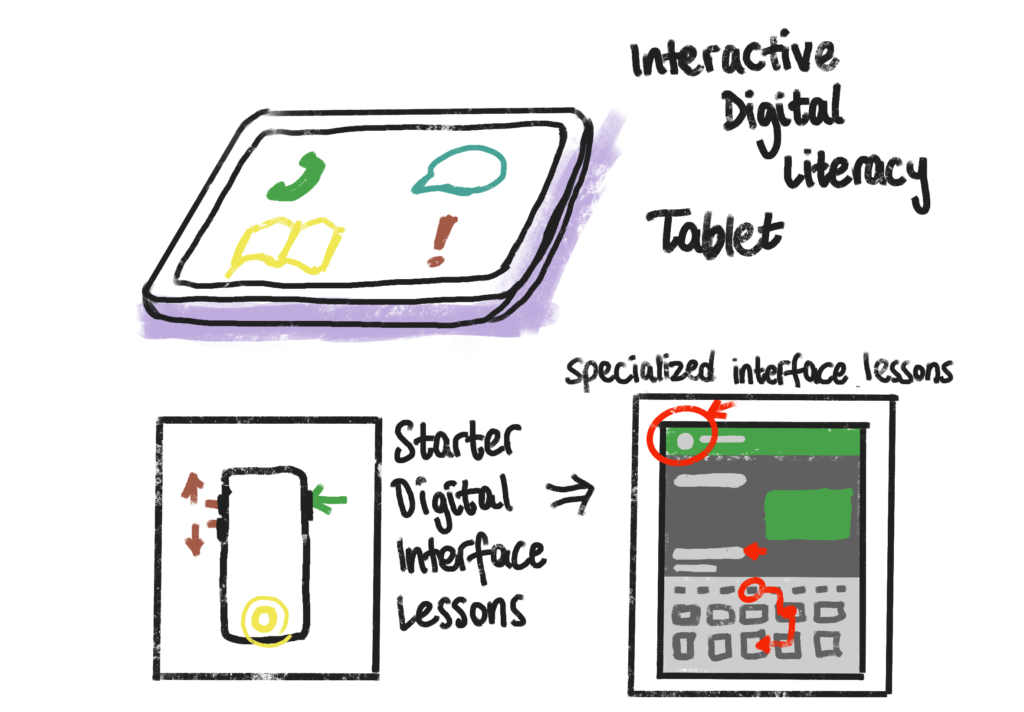 We can design an interface for a tablet that is designed to slowly educate elderly who are not familiar with technology at all by preliminary technological lessons that will introduce concepts and make them be practicable on the tablet also. Following that, they will be able to access specialized interface lessons for apps, phones, computers about tutorials for banking actions, healthcare appointments, mails, messages, calls etc.