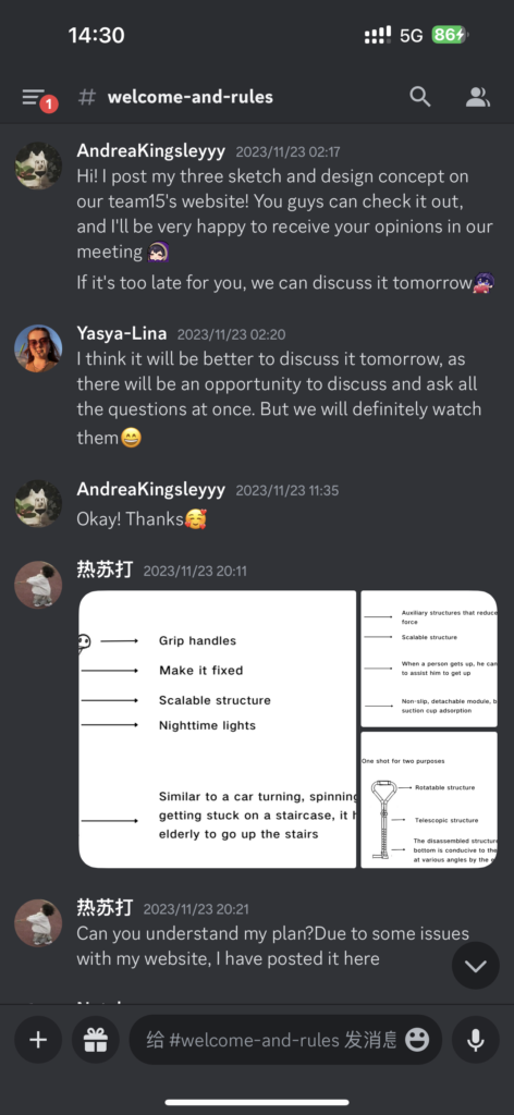 After we upload our design conceptions, we had a meeting on discord with our friends Team7 and talked about our designs.