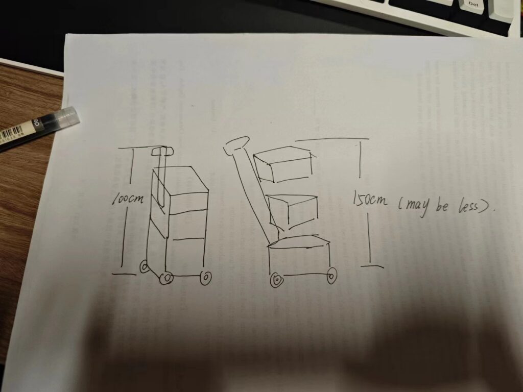 Hi! We thank you for your drawing. We think the boxes shouldn’t be directly on the wheels and also the wheels should be a little bigger. If you revise your design according to these critiques, we would love to see your final drawings with dimensions, details(if necessary), and a perpective. Good luck!