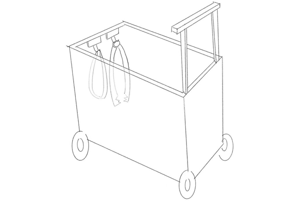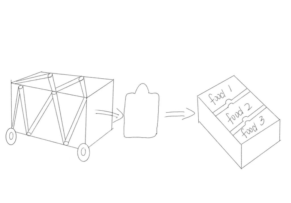 Hi guys, this will be our final program. The cart has a telescopic structure on all four sides, top, bottom, left and right, so you can change the space according to the amount of food. There are food clips and food wrappers on the front of the cart to make it easy for the seller to pick up the food when selling. The back of the cart has an additional magnetic plate, which can be inserted into the cart to partition the food.